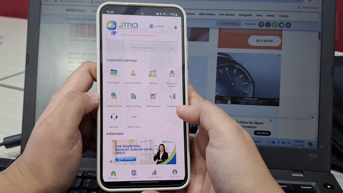 Selain situs Kemnaker, pengecekan juga bisa dilakukan melalui aplikasi JMO (Jamsostek Mobile) yang kini menjadi salah satu kanal tercepat untuk memvalidasi kepesertaan BPJS Ketenagakerjaan. Setelah mengunduh aplikasi, pengguna dapat login menggunakan email atau nomor ponsel. Dari beranda, buka menu “Program”, lalu pilih “BSU”. Sistem akan secara otomatis menampilkan status kepesertaan dan memberi informasi apakah pengguna memenuhi kelayakan sebagai penerima BSU.